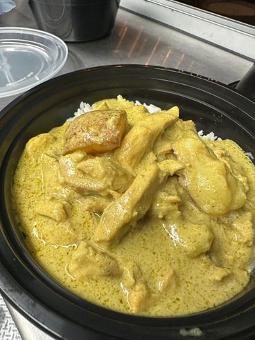 Gluten Free. Chicken and potatoes stewed in yellow curry and coconut milk. Served over rice.