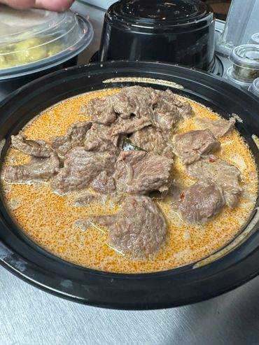 Julienned beef tenders and zucchini simmered in Panang Curry and coconut milk. Served over rice.